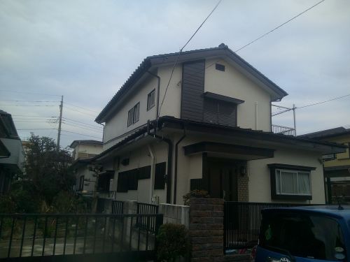 工事費総額 630,000円 前回塗り替えは外壁の膨れが有り剥離剤を使い外壁を全部剥がしての塗装を行いました 付帯塗装、雨樋、霧除け、戸袋、雨戸クーラーパイプ等 ベランダ床防水 軒天の換気口取り換え(有口ケイカル板) アルミ製面格子3ヶ所取り付け