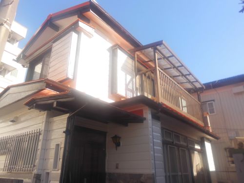 施工後 隣も9年前に当方で施工今回は直しが多く大工を紹介しサッシの取り換えや内装工事 風呂やキッチン、トイレを依頼当方せは内装塗装と外部の直しや塗装を行いました。 外壁塗装3回塗り 付帯塗装、戸袋、雨戸、霧除け、ベランダ鉄部、下屋根トタン、手摺、玄関回り等 付帯工事、雨樋全部取り換え、下屋根の箱樋の直し8m、他屋根直し、玄関軒直し等 ベランダ波板(ポリカ)に張替え サービス工事、霧除けトタン直し、 工事費総額 560,000円 塗装工事 外壁塗装3回塗り 下塗り、水性カチオンシーラー1回 上塗り、DANシリコンセラ2回 内装塗装2階2部屋、階段、風呂場、トイレ、全部屋の柱、枠の塗装他 、 詳しい工事内容 https://cosmospeint.com/ 施工 コスモスペイント 埼玉県飯能市笠縫267-12 042-971-4971(田中) |
