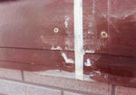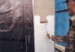 下地処理、カサギトタンの釘〆シーリング処理 サービス工事、ベランダ床(デッキ材)塗装 物置屋根塗装、給湯器固定 霧除けの補修、軒天ボード張り1部 (HP)