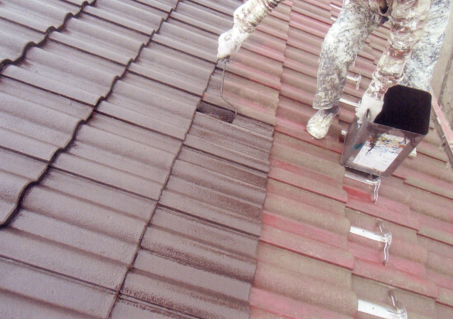 屋根遮熱塗装3回塗り 下塗り、ミラクシーラー2液 強溶剤 上塗り、シャネツロック2液、弱熔材