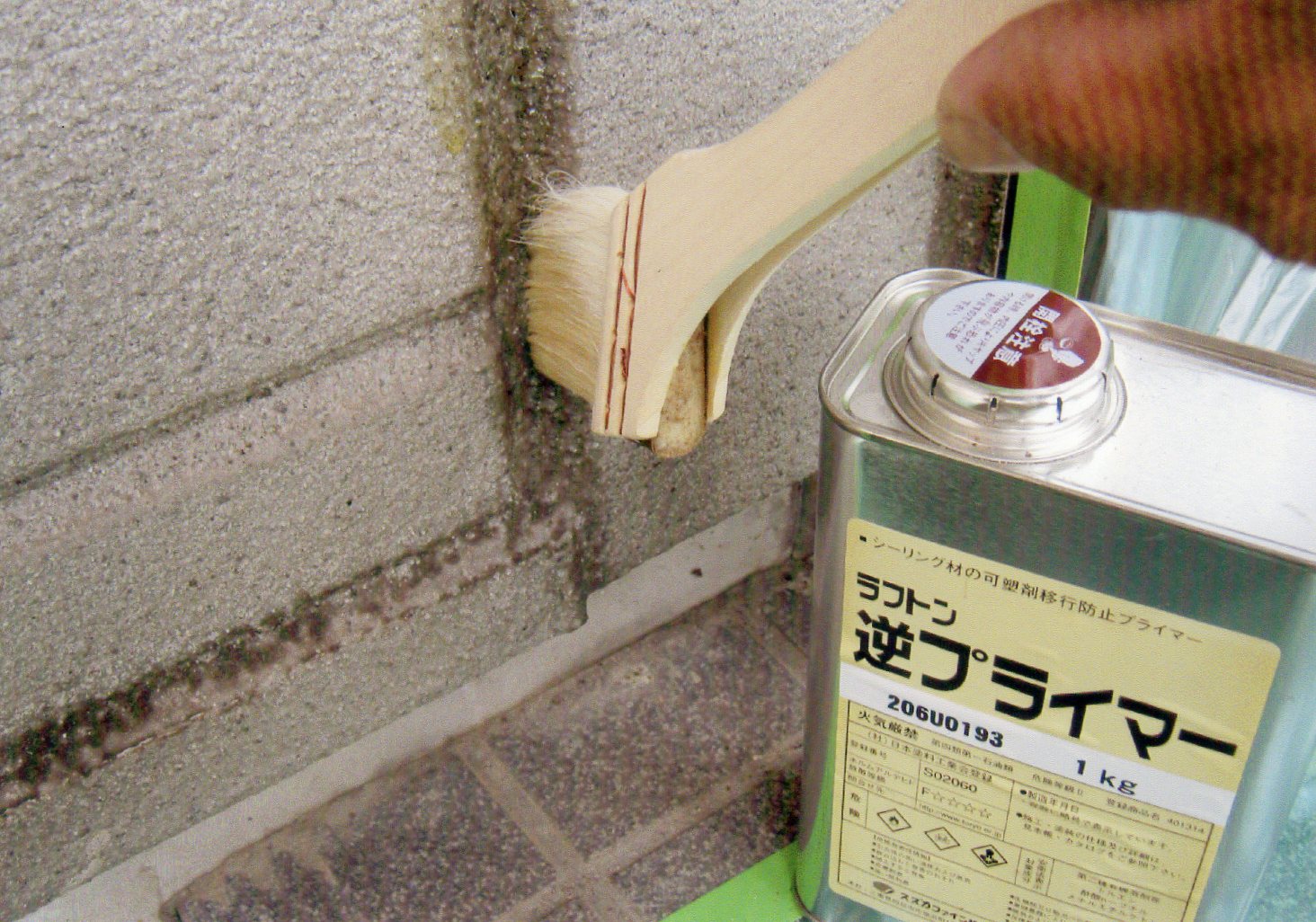 へーベルの合わせ目は逆プライマーで可塑剤汚染を押さえ、シーリング