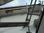 付帯工事(修理、取り換え) 軒天ベニヤ張替え 正面、1階、2階の全部、裏側の悪い部分 戸袋、波トタン張り、全部 木製敷居の取り換え、1本 (HP)