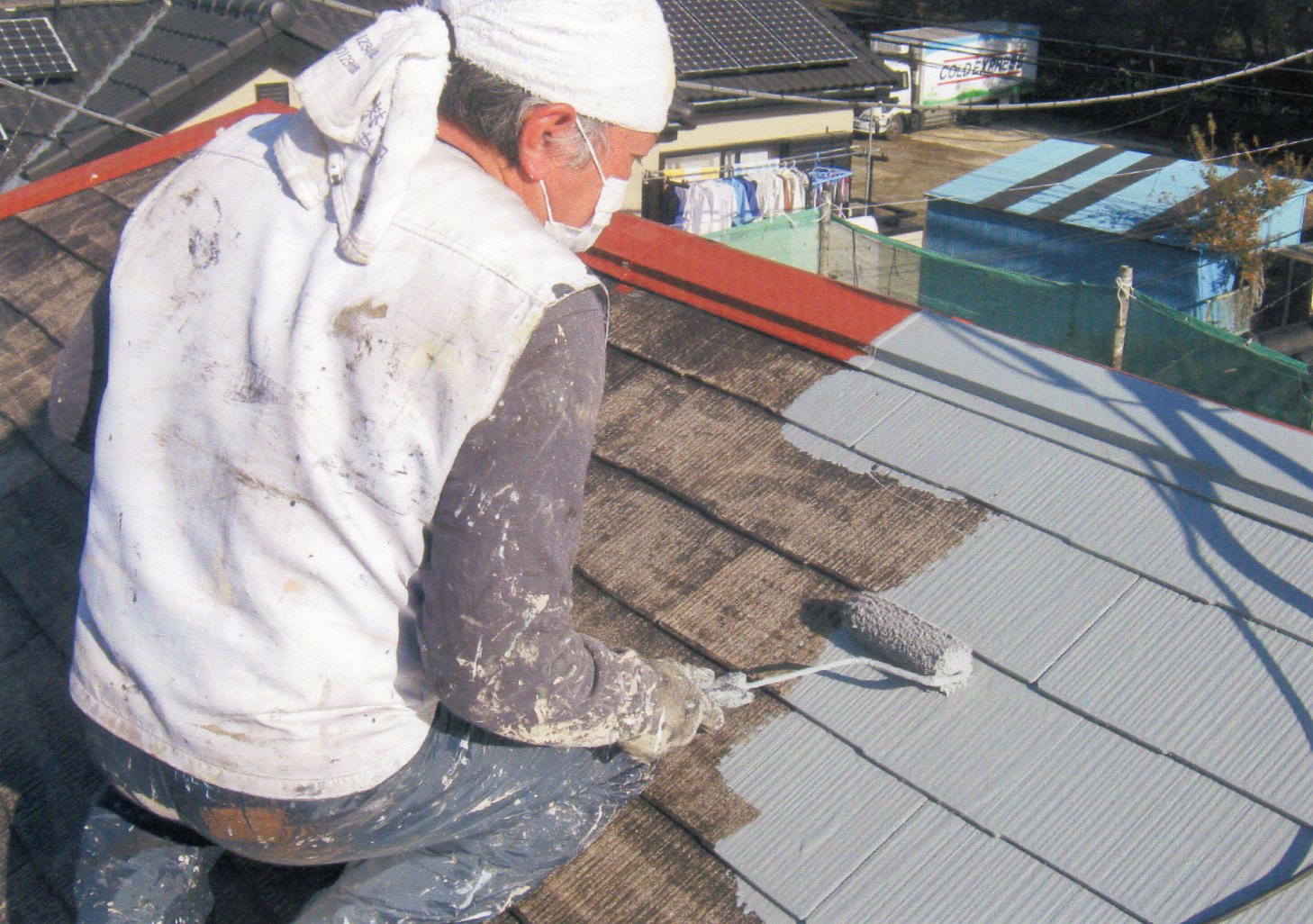 埼玉県、上尾市、H邸、27坪、築11年 サイディング自体の劣化も起こり始めて、下地処理は、サイディングの浮きの締め付けや シーリング処理を行い塗装作業へ移ります、 外壁は1階、2階の色分け仕上げです、1階ND491、2階ND461、屋根の仕上げ材は、ファインUVベスト2液で仕上げました、付帯塗装、破風、軒天、帯、戸袋、雨戸、霧除け等込み、工事費総額 600,000円 サイディング4回塗り 下塗り、エポエムシーラー1回 中塗り、パーフェクトサーフ1回 上塗り、ファインSI シリコン2液、2回 屋根UV塗装3回塗り 下塗り、1液ファインシリコンベストシーラー1回 上塗り、ファインUVベスト2液、2回 工事内容の(HP)は下記へ http://cosmospeint.web.fc2.com/ 詳しい工事内容は下記へ http://cosmospeint.web.fc2.com/navigator_022.htm お問い合わせは下記へ コスモスペイント 埼玉県飯能市笠縫267-12 042-971-4971(田中) メール http://cosmospeint.web.fc2.com/navigator_005.htm |