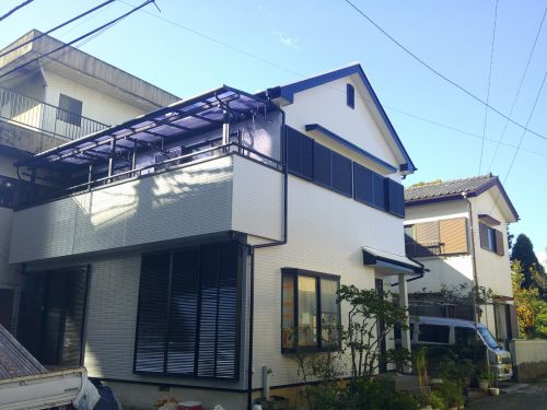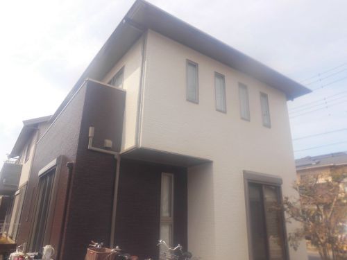 入間市S邸 外壁3回塗り 下塗り 水性カチオンシーラー1回 屋根3回塗り 下塗り 1液ベストシーラー1回 上塗り ファインシリコンベスト2回 付帯塗装雨樋、霧除け、戸袋、雨戸、笠木、玄関回り等 サッシ動かず直しました