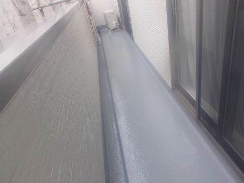 下塗り、ワイドシーラー1回 中塗り、SDサーフエポ1回 付帯塗装、雨樋、破風、軒天、霧除け、 ベランダ床防水 屋根遮熱塗装4回塗り 遮熱効果を上げる為白の仕上げ塗装 下塗り、1液ベストシーラー1回 中塗り、ハイポンプライマー2液1回白 上塗り、クールタイト弱溶剤2液2回白 施工コスモスペイント 埼玉県飯能市笠縫267-12 042-971-4971 携帯070-6640-8647 田中 ホームページ https://cosumosupeinnto.zatunen.com/